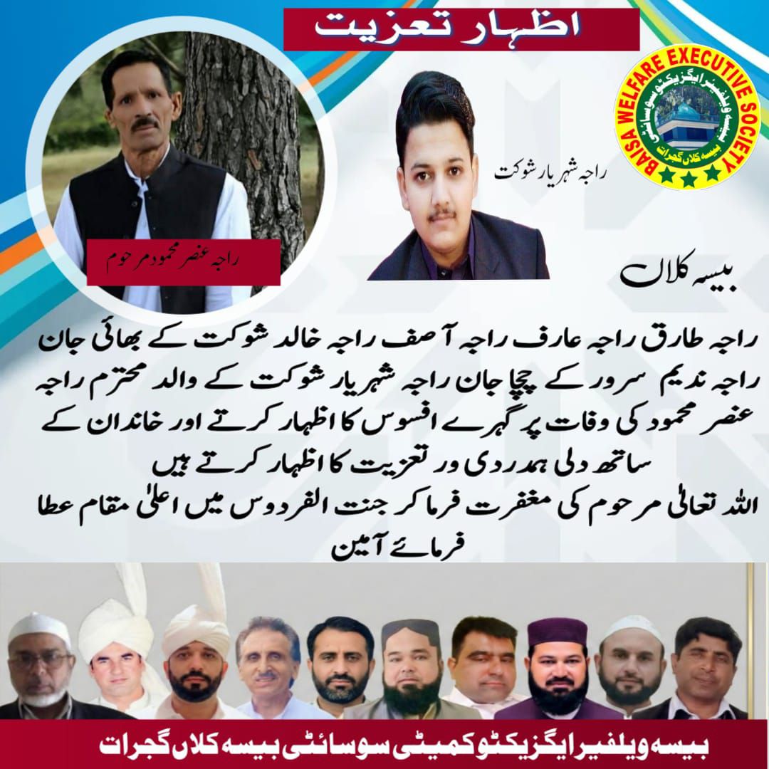 نہایت رنج و الم کے ساتھ یہ افسوسناک خبر موصول ہوئی کہ بیسہ کلاں سے تعلق رکھنے والے *راجہ شہریار شوکت کے والد محترم* *راجہ عنصر محمود* اس دارِ فانی…
