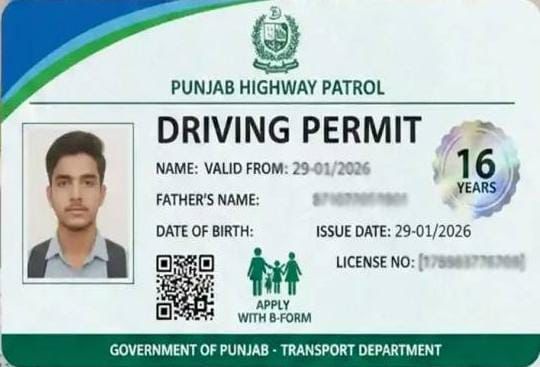 پنجاب بھر میں 16 سے 18 سال کے بچوں کے ڈرائیونگ لائسنس کا اجرا شروع